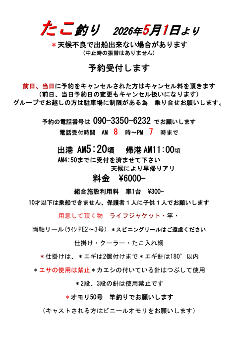 | 投げ釣り / 浮き釣り / 胴付き釣り / 探り釣り /